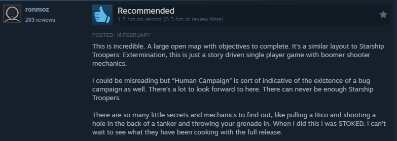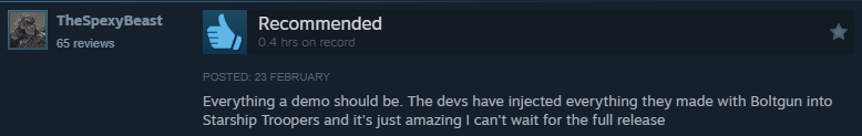 Head to steam now and download the demo to join the Mobile Infantry and crush some bugs!